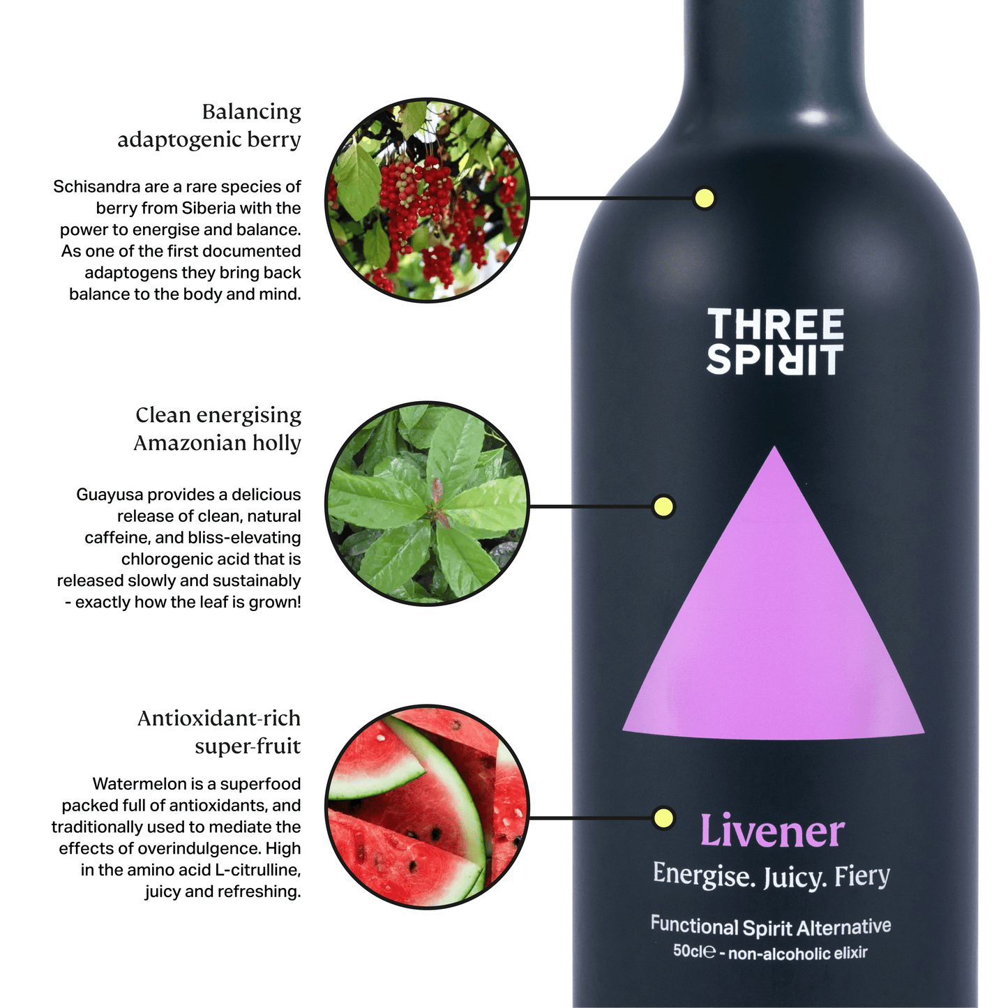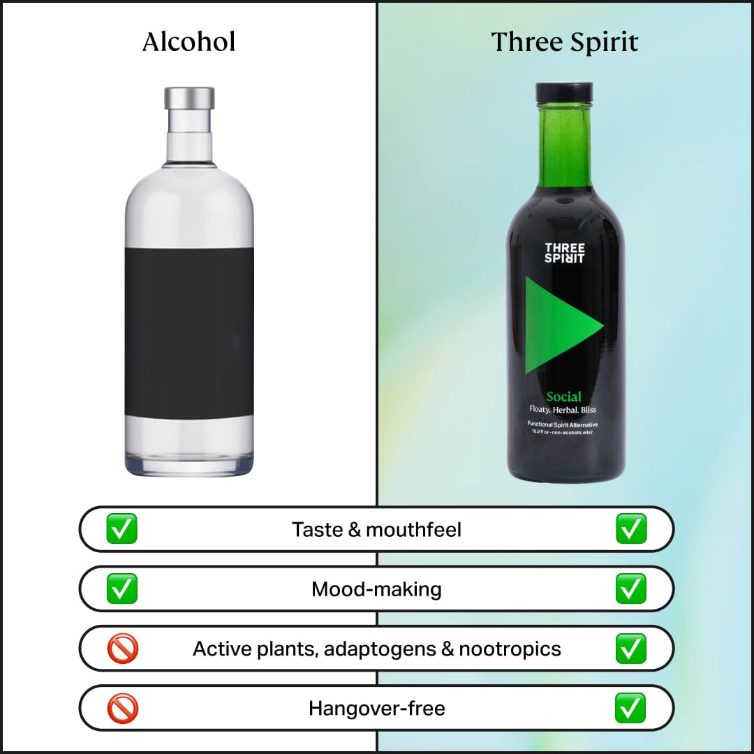 At Three Spirit we believe in celebrating what goes in a drink, rather than what’s taken out. Our award-winning Botanical Elixirs will have you feeling some type of way even without alcohol. The active compounds and ingredients in each formula were carefully selected to help you feel your best whether you are celebrating, socialising or chilling-all minus the hangover. Plus they’re vegan and gluten free, contain no artificial flavours or colours, are ethically sourced, and sustainably packaged.